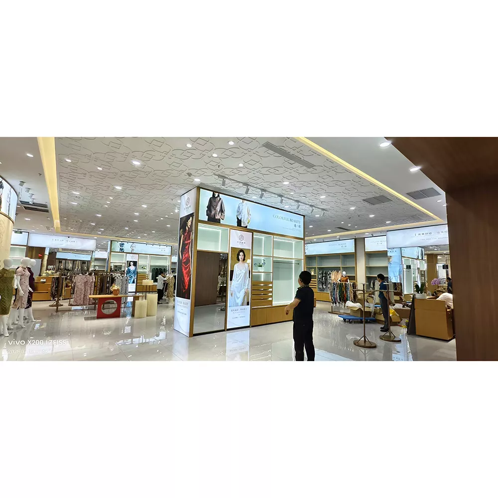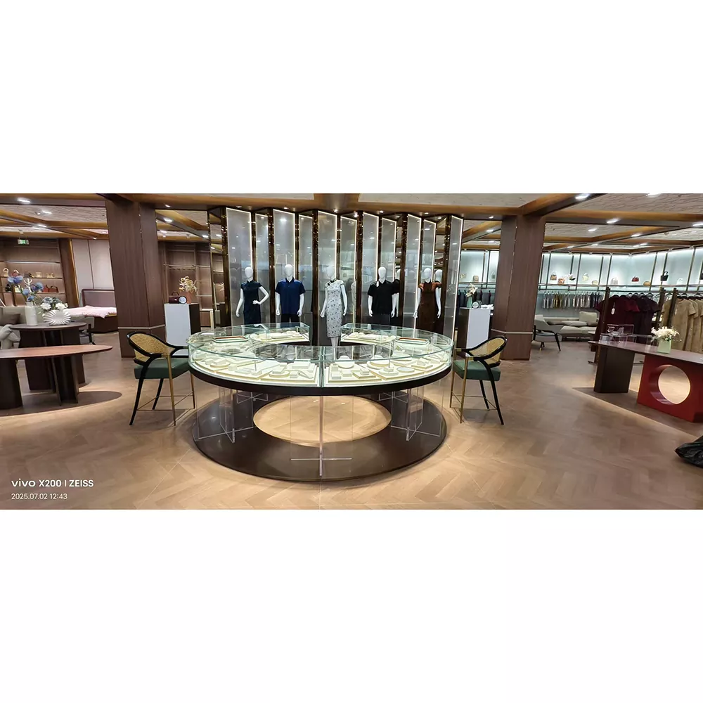 Varje displayställ för damkläder i glas är noggrant utformat med uppmärksamhet på varje detalj, vilket säkerställer högsta kvalitetsstandarder. Glasmaterialet genomgår specialbehandling, vilket ger utmärkt slitstyrka och tryckhållfasthet, vilket garanterar långvarig hållbarhet och enkel rengöring tack vare sin släta yta.