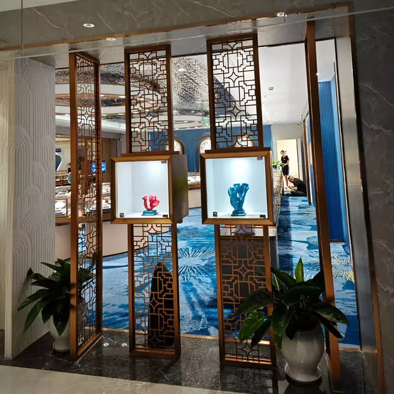 Aojies rostfritt stålskärm är utformade från rostfritt stål av hög kvalitet genom en flerstegsprocess för skärning, böjning, svetsning, slipning och polering. Rostfritt stål är inte bara hållbart och lätt att rengöra, utan anpassar sig också perfekt till olika miljöer. Vi är engagerade i att tillhandahålla en stabil, vacker och hållbar visningsplattform för dina produkter. Detta material är inte bara hållbart, utan också giftigt, miljövänligt och återvinningsbart, vilket gör det till ett hållbart och miljövänligt val.